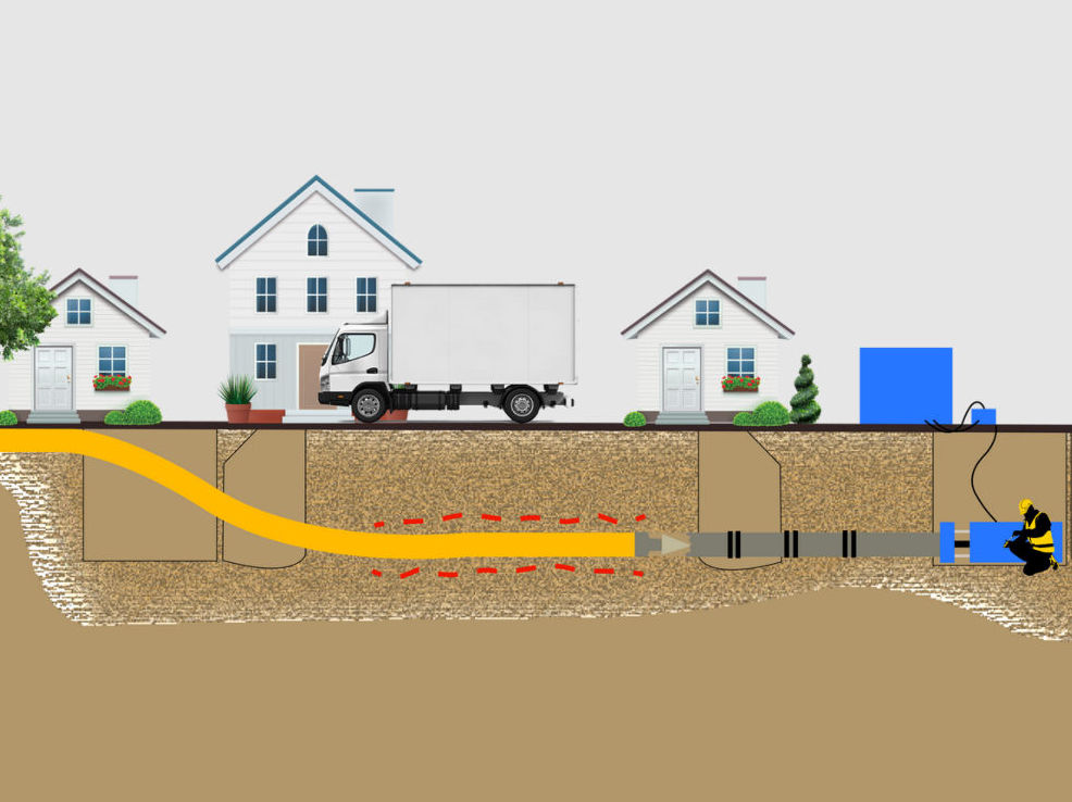 Je to metoda zatažení nového potrubí do stávajícího bez destrukce potrubí pomocí lanového navijáku.